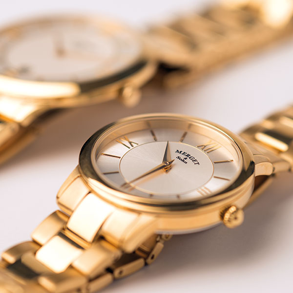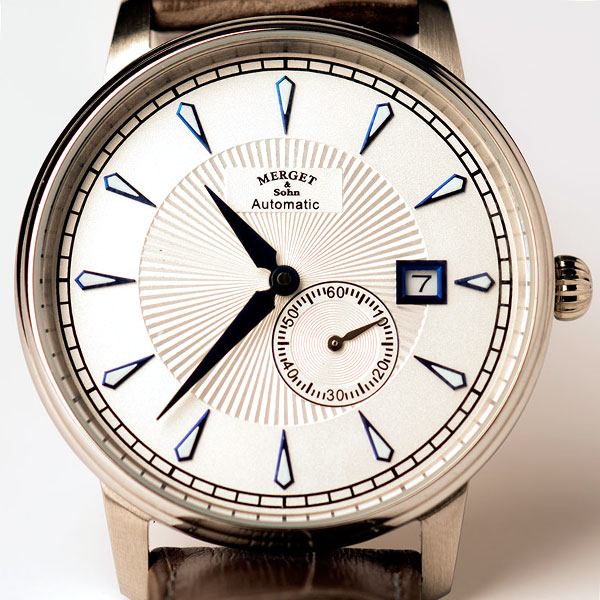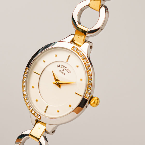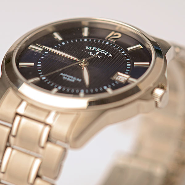 Unsere Eigenmarke „Merget & Sohn" stellen wir nach fachlichen Gesichtspunkten zusammen. Form, Design und Funktion spielen dabei eine große Rolle. Hochwertige und ausgesuchte Materialien lassen eine moderne und langlebige Uhr entstehen.